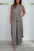 Laney plissiertes, unregelmäßiges Midi-Oberteil mit kurzen Ärmeln und Hose mit weitem Bein und elastischer Taille
