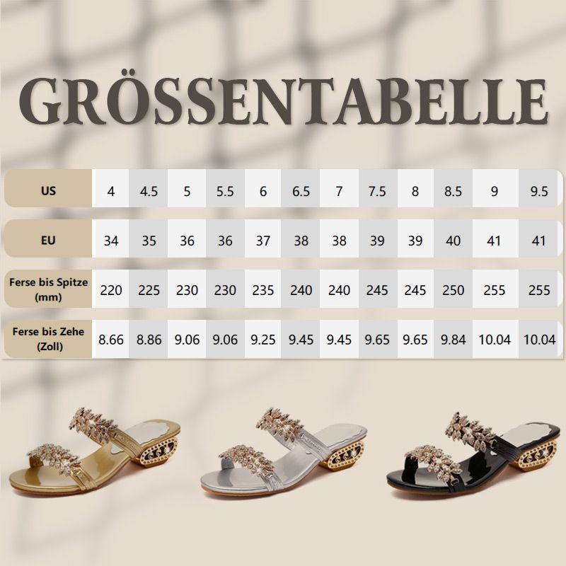 ERWEITERN SIE IHRE GARDEROBE: Erweitern Sie Ihre Schuhkollektion mit unseren Strass-Sandalen für Damen, die eine luxuriöse Ergänzung zu jeder Garderobe darstellen. Perfekt für Fashionistas, die hochwertige Verarbeitung und zeitlose Eleganz zu schätzen wissen.