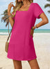 💕Sommeraktion 50% RABATT👗Damen Freizeitkleid mit quadratischem Ausschnitt und Taschen, Kurzarm