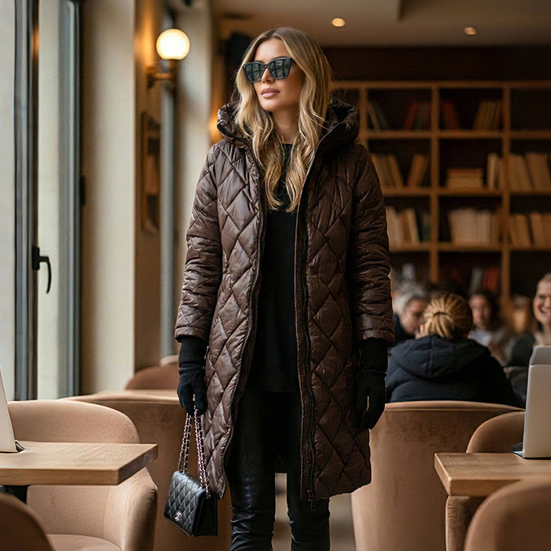Langer, gesteppter Daunenmantel mit Kapuze für Damen🔥Kostenloser Versand🔥